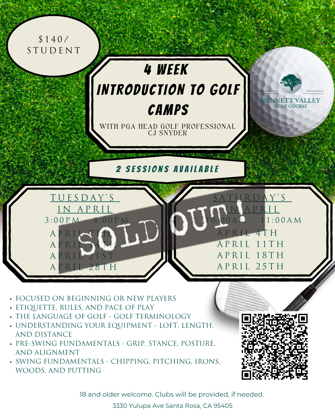 4 WEEK INTRODUCTION TO GOLF CAMPS | SOLD OUT!